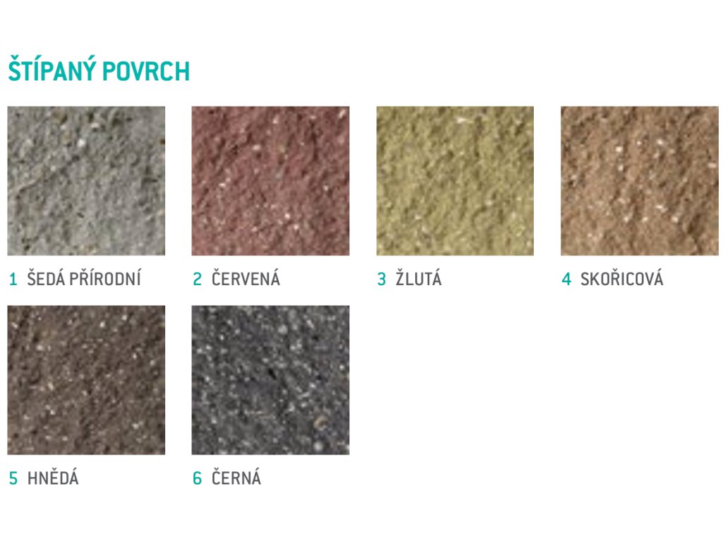 - Povrch: standard, štípaný